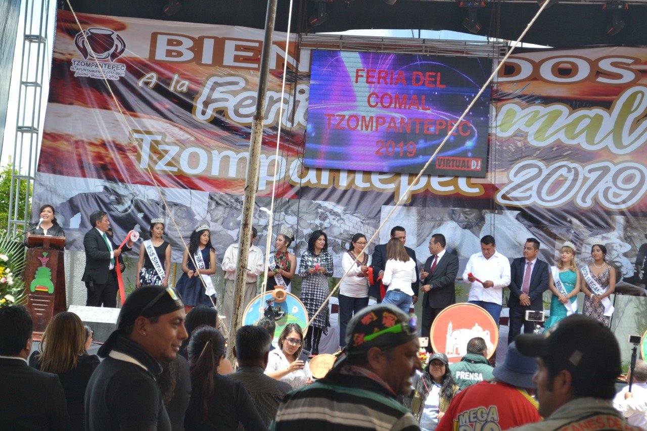 El presidente municipal Arturo Rivera encabezó el evento protocolario de inauguración de la feria del comal, Tzompantepec 2019, en la explanada principal de la cabecera.