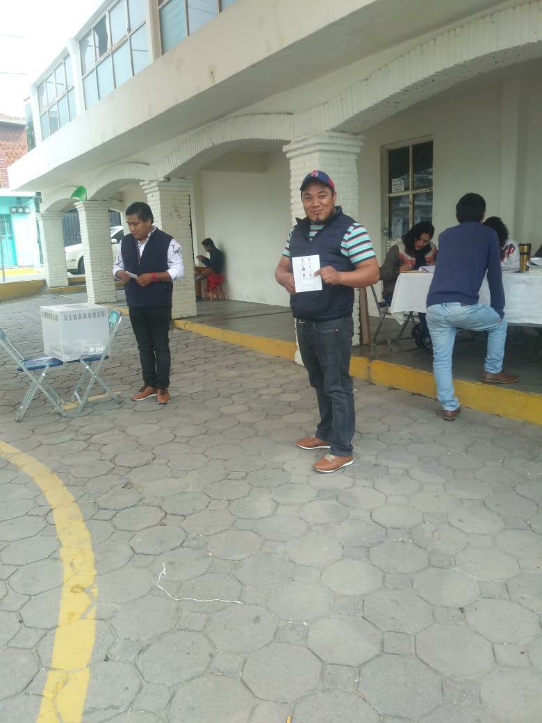 El primer priísta de Tequexquitla, Óscar Vélez Sánchez acudió a la explanada municipal desde temprana hora, donde emitió su voto acompañado de sus hermanos quienes apoyaron también para recuperar la confianza de la ciudadanía con la finalidad de volver a ser una mejor opción partidaria.