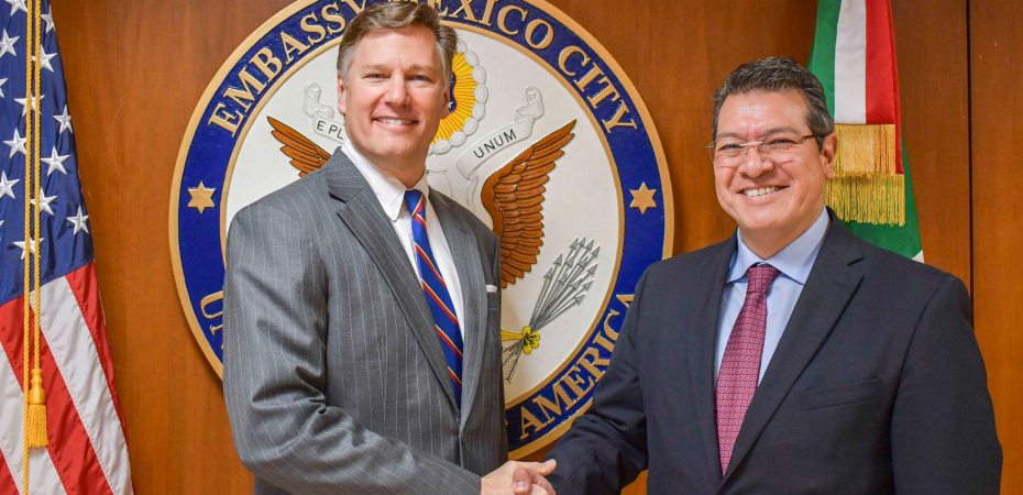 El Gobernador Marco Mena se reunió con el Embajador de Estados Unidos en México, Christopher Landau, para analizar temas relacionados con la economía, inversión, seguridad y educación en Tlaxcala.