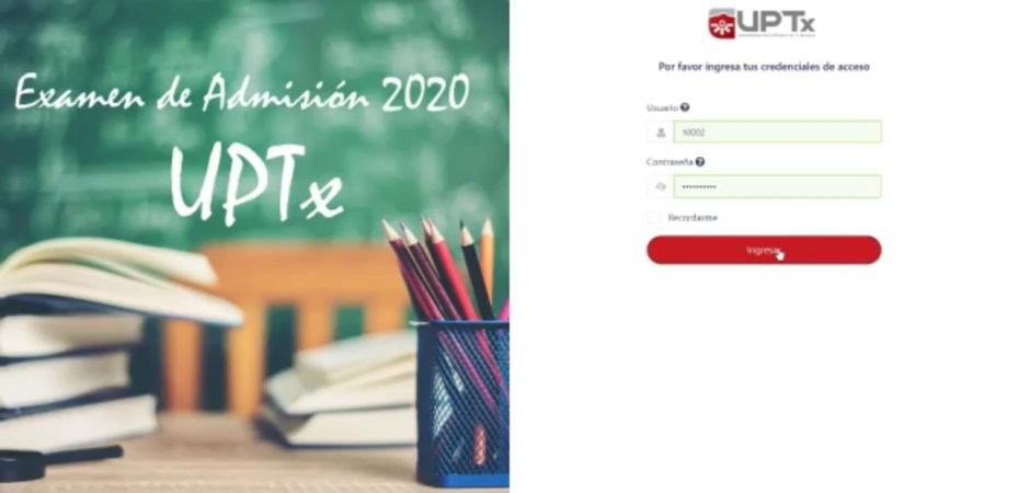 Y este 19 de mayo, de las 9 de la mañana a las 13:50 horas, los jóvenes que hicieron su trámite aplicarán el examen de admisión a través de la dirección https://admisionuptx.catialab.com, ingresando como usuario con su número de registro (de 4 o 5 dígitos) y la contraseña que deben usar para accesar será su fecha de nacimiento.