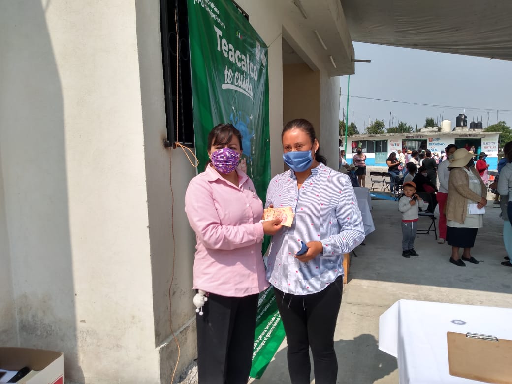Con la finalidad de impulsar la economía local, en el municipio de San José Teacalco, se entregaron apoyos económicos a más de 2500 amas de casa, a las mujeres que que dieron cita este viernes, se les solicitó que por su seguridad y de las demás personas que asistieron, mantener las medidas de sana distancia, uso de cubrebocas, así como, la aplicación de gel antibacterial, todas ellas, señaladas por el gobierno federal.