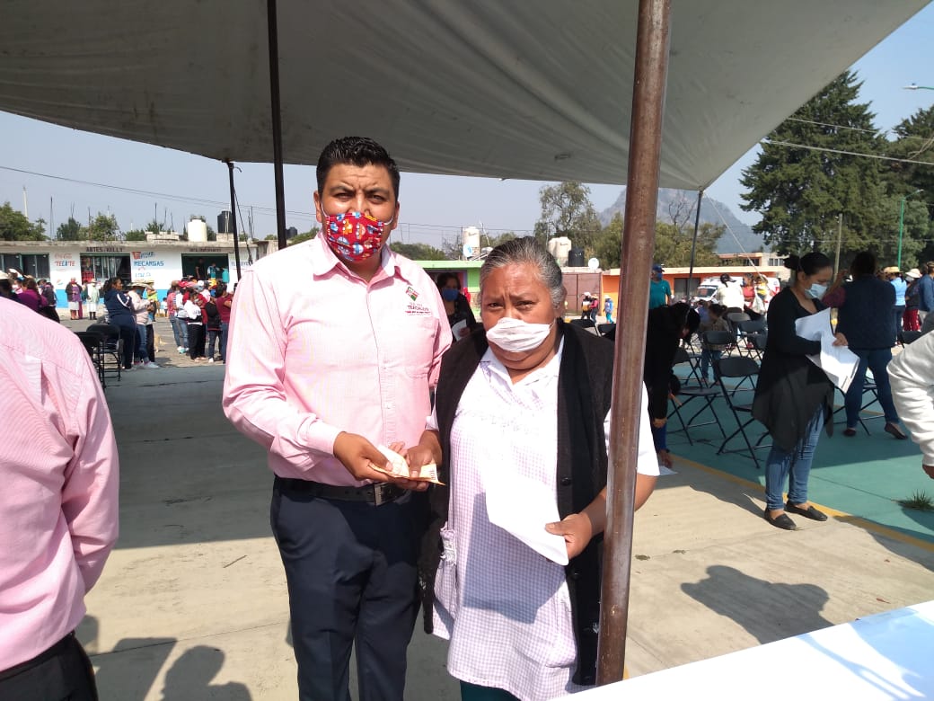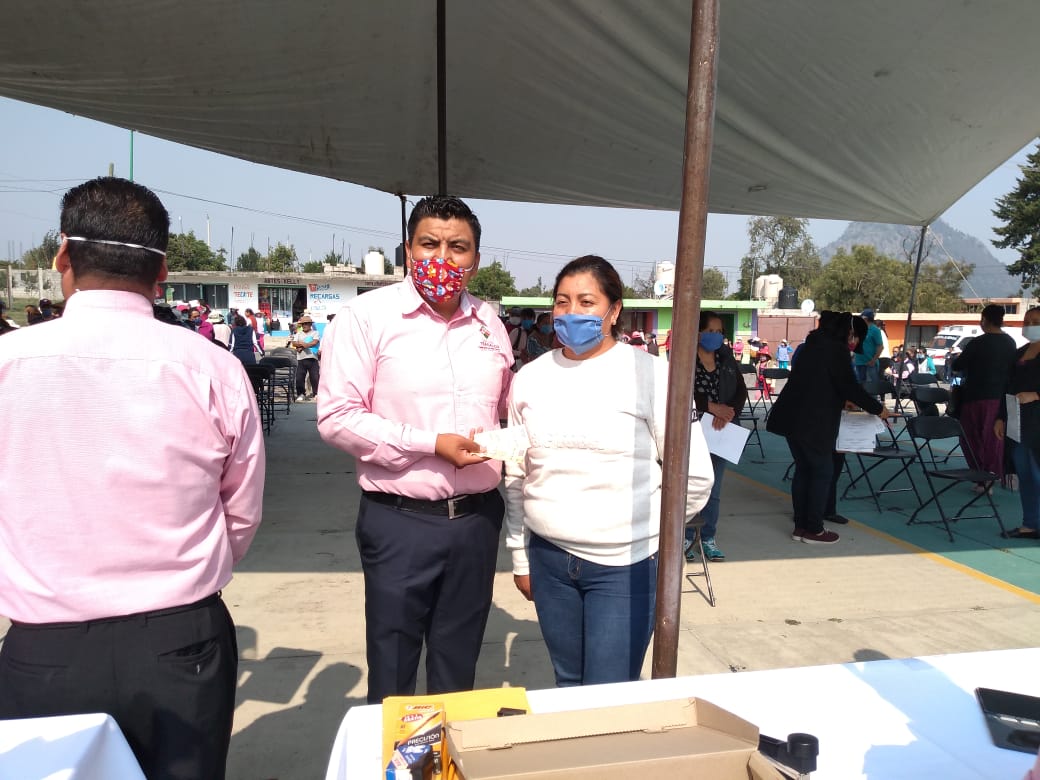 El alcalde, empezó a entregar los apoyos poco antes de las diez de la mañana, a todas las personas que se encontraban registradas, y presentaron una copia de la credencial de elector, en mano para poder ser más rápida la entrega.