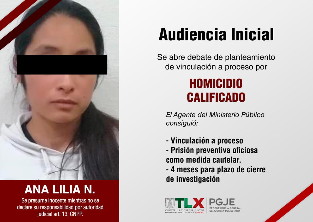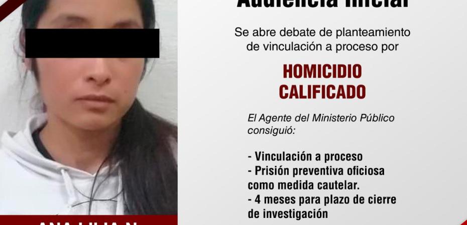 Producto del trabajo coordinado entre el Agente del Ministerio Público, peritos y oficiales de la Policía de Investigación de la Procuraduría General de Justicia del Estado (PGJE), se logró vincular a proceso a Ana Lilia N., quien presuntamente privó de la vida a su pareja al interior de su domicilio en el municipio de Atltzayanca.