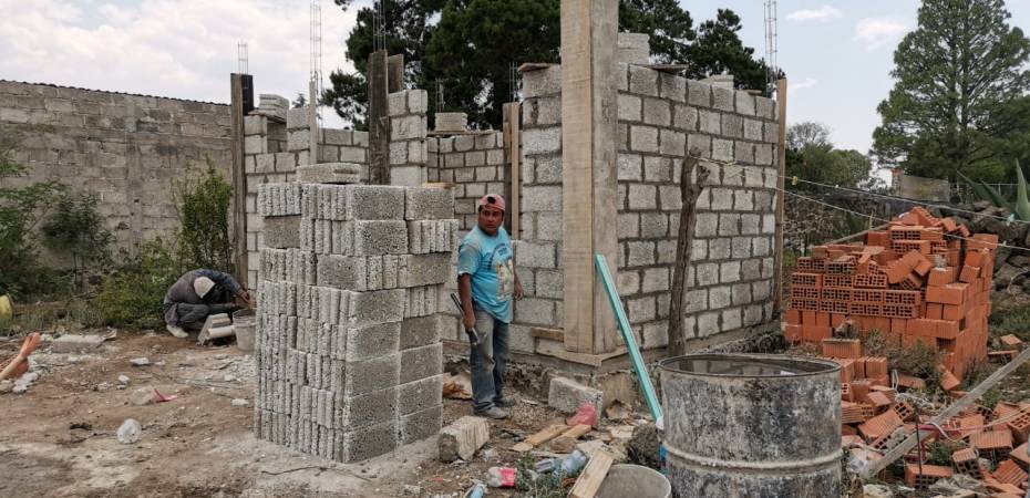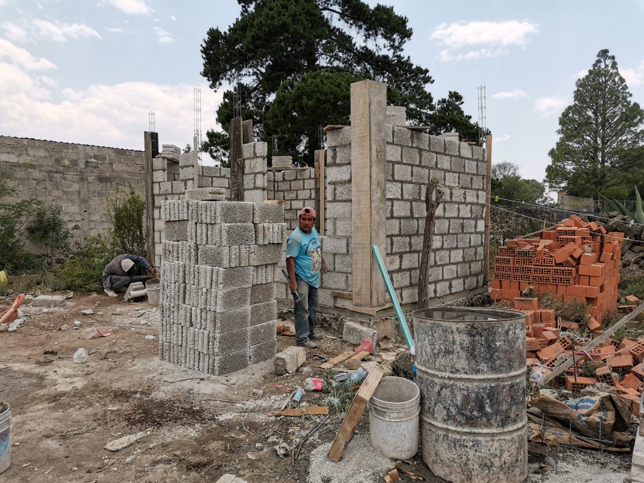 Como parte del programa de ampliación de vivienda en zonas urbanas, se construyen cinco cuartos dormitorios; tres en la cabecera municipal y dos más en comunidades. Con esta acción se busca beneficiar a cerca de 20 personas que hasta ahora viven con materiales precarios, en hacinamiento o con un enfermo con insuficiencia renal.