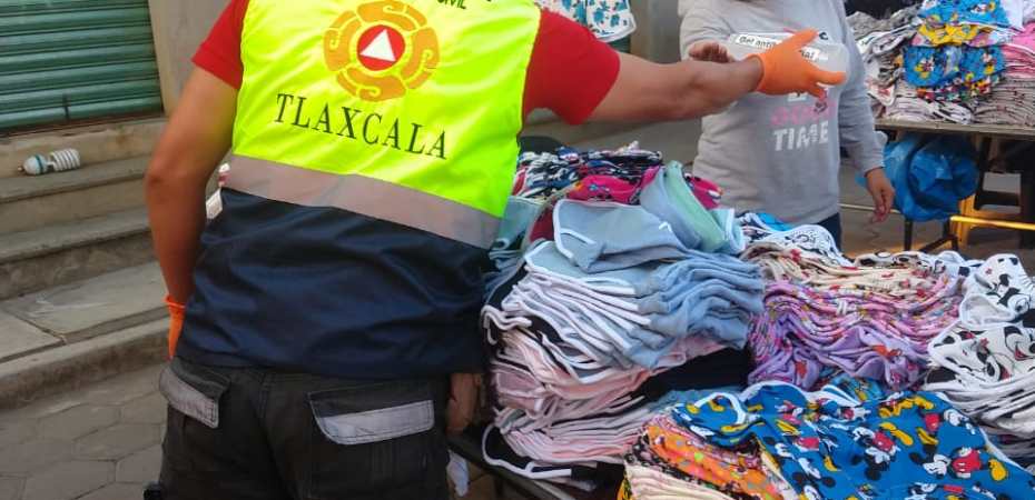 La Coordinación Estatal de Protección Civil (CEPC) reforzó las medidas preventivas por Covid-19 entre comerciantes tlaxcaltecas de Mazatecochco, que acudían semanalmente a San Martín Texmelucan, Puebla, y que debido a la emergencia sanitaria ahora desarrollan su actividad comercial en este municipio de Tlaxcala.