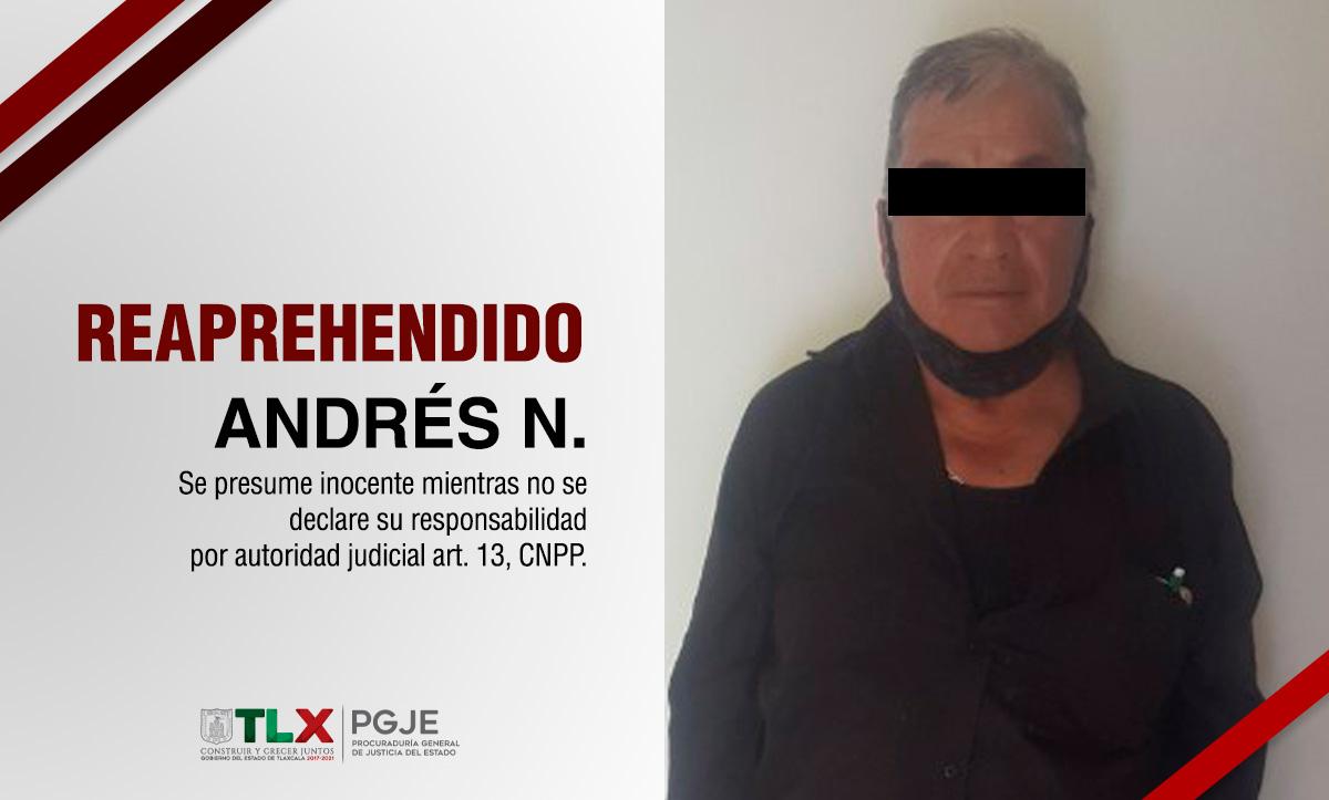 Producto de estos actos procesales, la autoridad jurisdiccional decretó la reaprehensión de Andrés N., por lo que elementos de la ahora Policía de Investigación lograron establecer su ubicación en la Segunda Sección del municipio de Zacatelco.