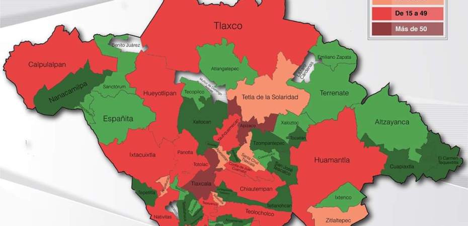 Hasta este momento, Tlaxcala registra 137 casos, Apizaco 76, Chiautempan 47, San Pablo del Monte y Huamantla 40, Zacatelco 39, Calpulalpan 32, Yauhquemehcan 28, Contla 26, Nativitas 23, Ixtacuixtla 22, Hueyotlipan y Panotla 21, Papalotla 19, Tlaxco 17; Totolac 16, Tepeyanco y Teolocholco suman 15, Santa Ana Nopalucan 14.