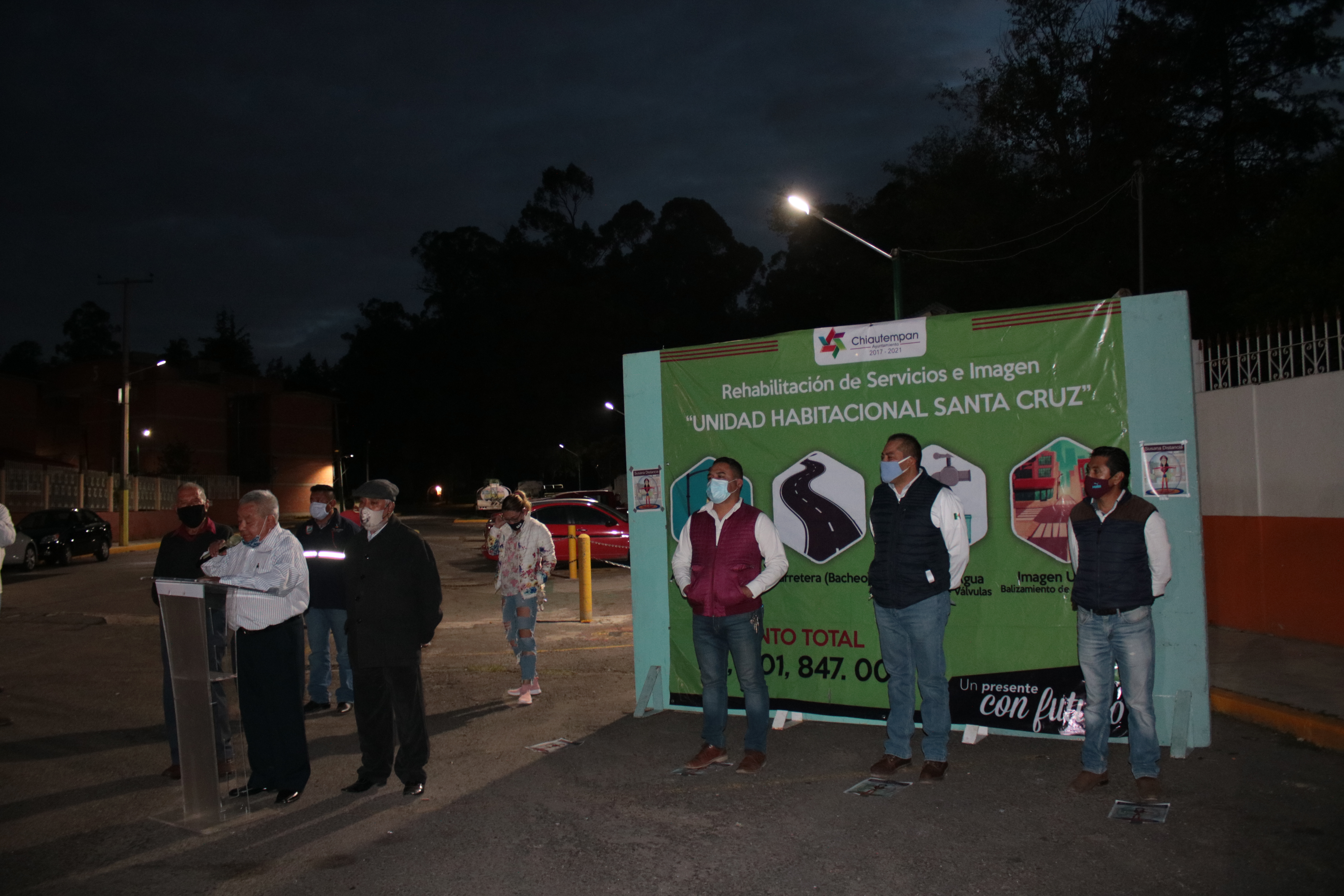 El Presidente Municipal de Chiautempan Héctor Domínguez Rugerio realizo la entrega de las obras de mejoramiento de imagen y servicios públicos en la unidad Santa Cruz.