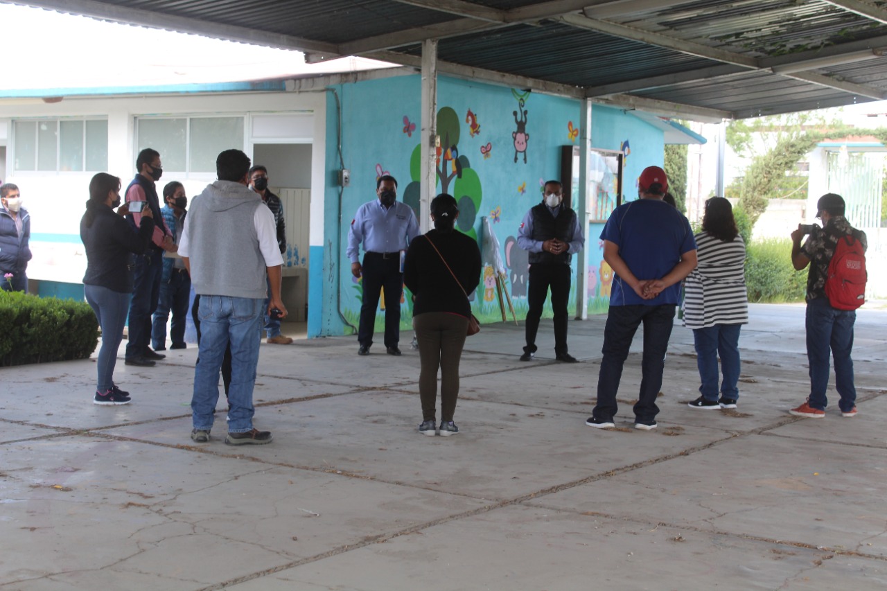 Para dar el banderazo del inicio de la obra, el presidente municipal de Santa Ana Nopalucan, Tlax., Jaime Herrera Vara, estuvo acompañado por los miembros del cabildo, además de la directora de la institución y algunos miembros del comité de padres de familia.