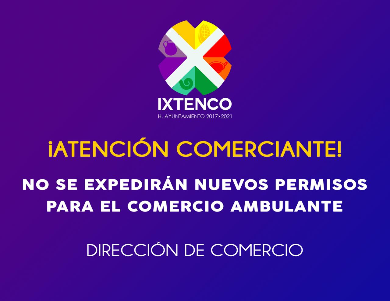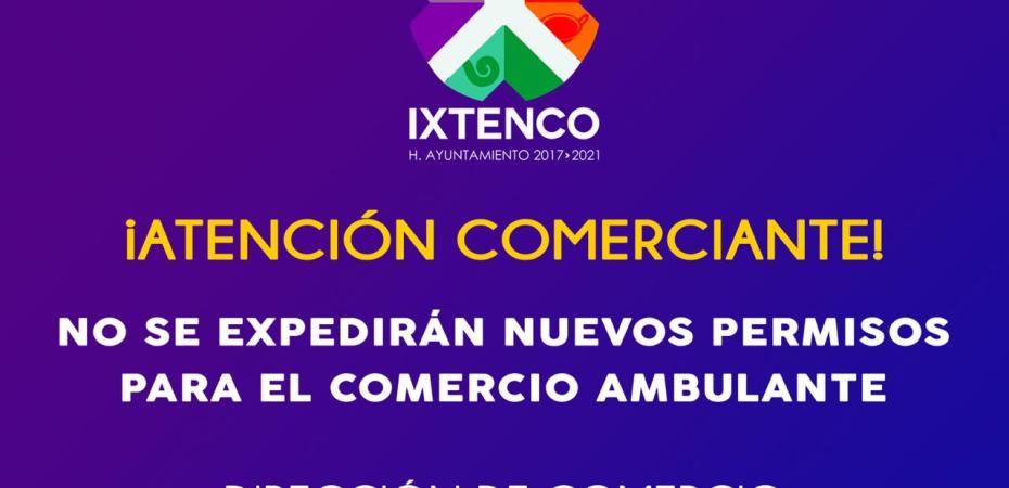 El Gobierno Municipal de Ixtenco, a través de la dirección de comercio, anunció que en este mes y durante el tiempo en que dure la pandemia, no se otorgarán permisos para que comercios semifijos o ambulantes coloquen sus puestos en el centro o a orillas de la demarcación.