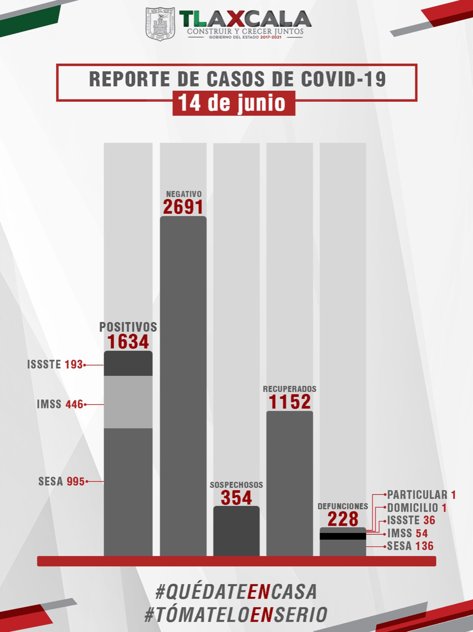 De esta manera, el estado registra mil 634 casos positivos, mil 152 personas recuperadas y 228 fallecimientos.
