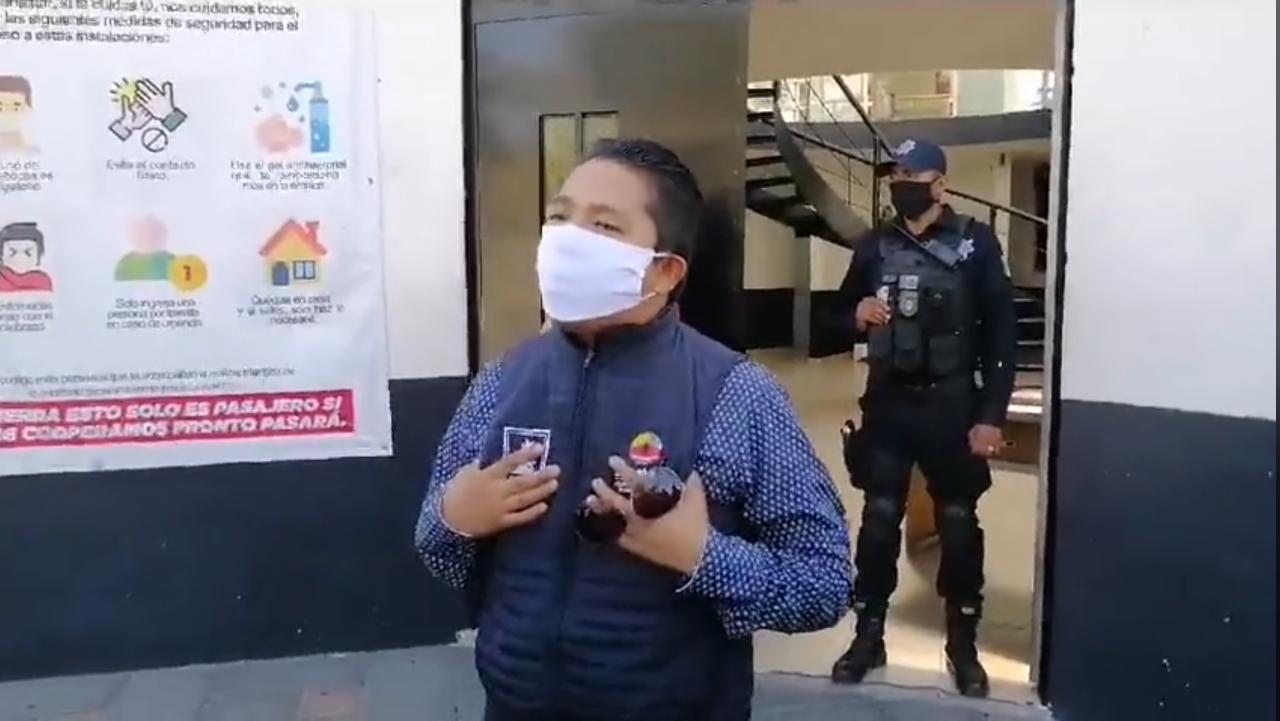 Al momento en el que el periodista comienza a solicitar más explicaciones y demostrar el exceso de elementos policiacos y a ilustrar que se encuentra a las afueras de la casa del presidente municipal, Tomás Orea Albarrán, un policía se le acerca y le pide que dejé de grabar, subiéndolo a la patrulla municipal en donde nuevamente le soliciten que deje de grabarlos.