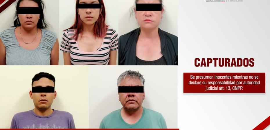 En una acción operativa coordinada por oficiales de la Policía de Investigación adscritos a la Unidad de Investigación de Delitos de Alto Impacto (UIDAI) de la Procuraduría General de Justicia del Estado (PGJE) y elementos de la Coordinación Nacional Antisecuestro (Conase), se logró salvaguardar la integridad de una víctima de extorsión telefónica, así como asegurar a cinco personas por este delito; además, los imputados son investigados por el secuestro de la misma víctima cometido días antes.