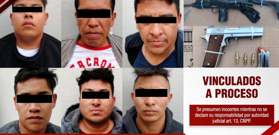 La Procuraduría General de Justicia del Estado (PGJE) consiguió de un Juez de Control la vinculación a proceso en contra de seis personas del sexo masculino por los delitos de secuestro exprés agravado y violación, por lo que enfrentarán su investigación en prisión preventiva oficiosa.