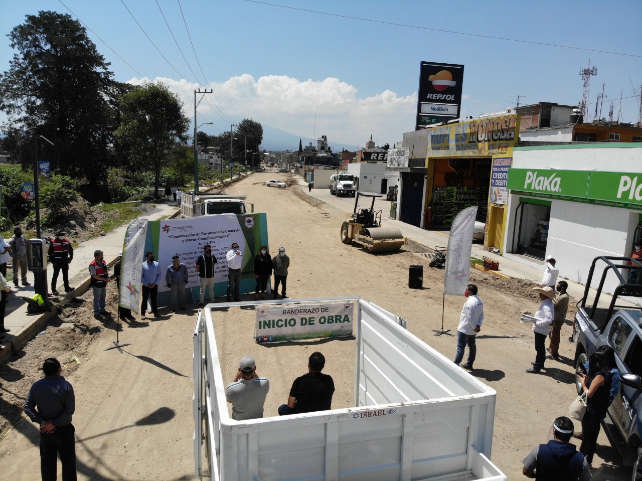 Héctor Domínguez Rugerio Presidente Municipal de Chiautempan en compañía del Secretario del Ayuntamiento Nicolás Gutiérrez De Casa, dio el banderazo de inicio a las obras de construcción de pavimento de concreto y obras complementarias que se estarán realizando en la avenida la paz, una de las calles más transitadas de Chiautempan.