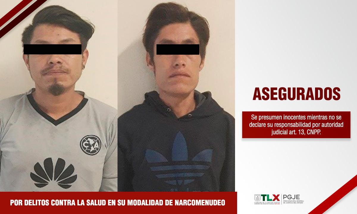 Como parte del trabajo operativo que realizan oficiales de la Policía de Investigación adscritos a la Procuraduría General de Justicia el Estado (PGJE), se logró la detención de dos personas del sexo masculino a quienes se le encontraron envoltorios con hierba seca con características propias a la mariguana, por lo que fueron asegurados por delitos contra la salud en su modalidad de narcomenudeo.