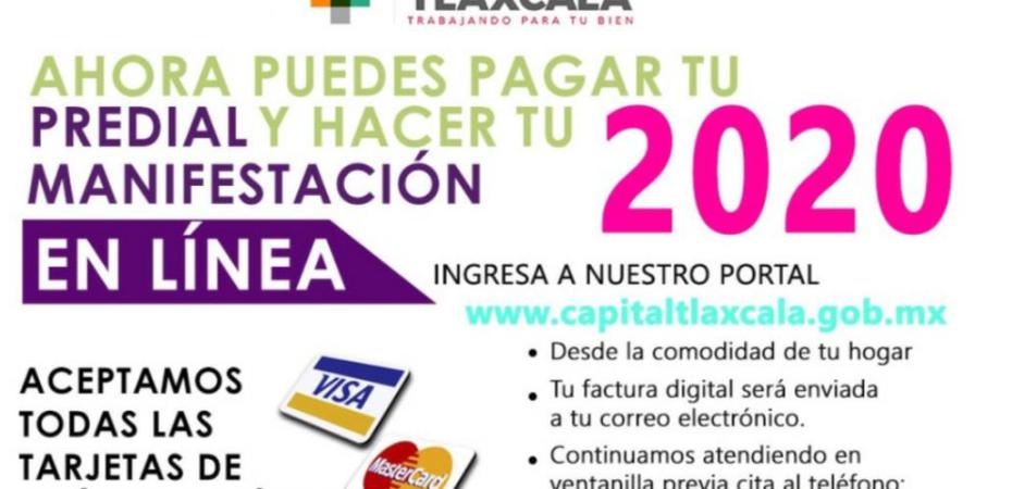 El Ayuntamiento de Tlaxcala pone a disposición de los usuarios el método de pago en línea para que con su tarjeta de crédito o débito puedan pagar el impuesto predial y la manifestación catastral sin necesidad de acudir a las oficinas municipales, al banco o cajeros automáticos.