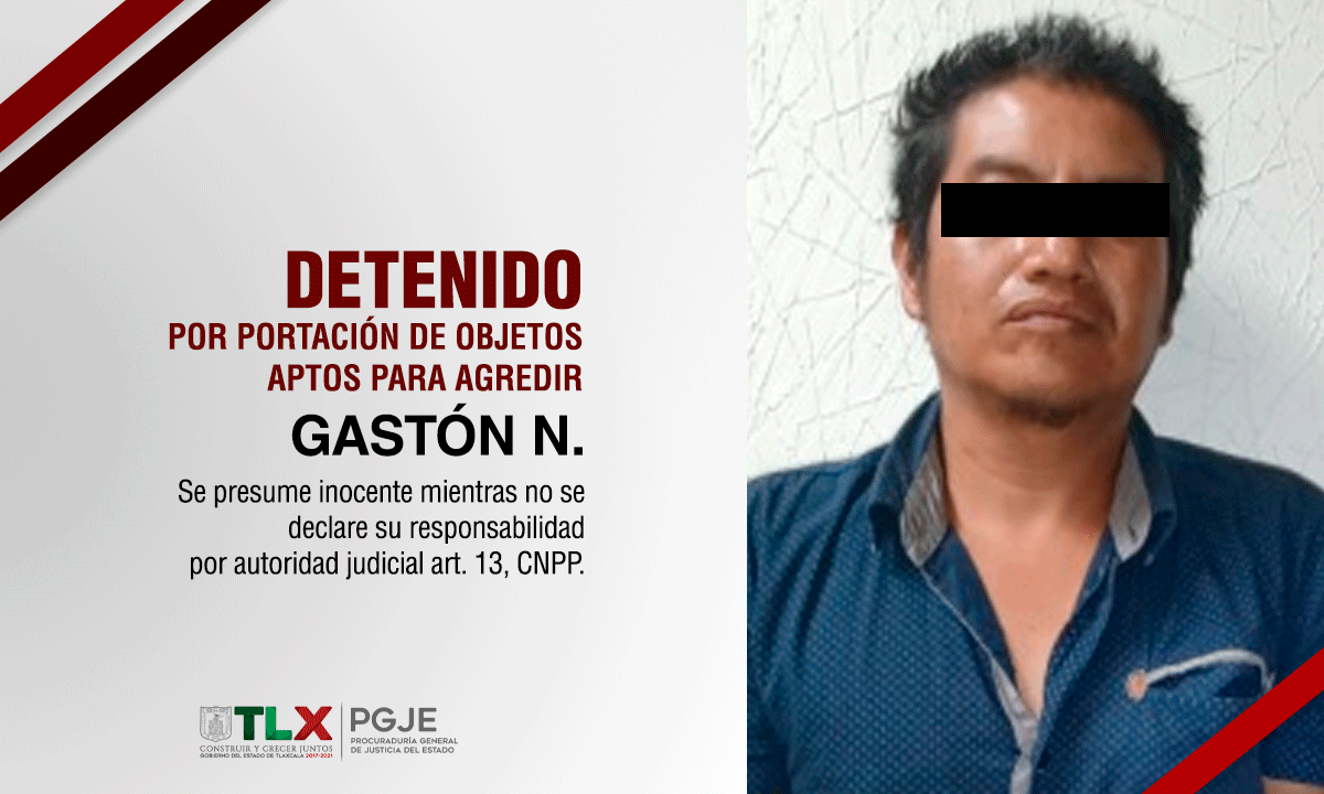 Por lo anterior, quien dijo llamarse Gastón N., de 40 años de edad, fue puesto a disposición del Agente del Ministerio Público por portación de objetos aptos para agredir.