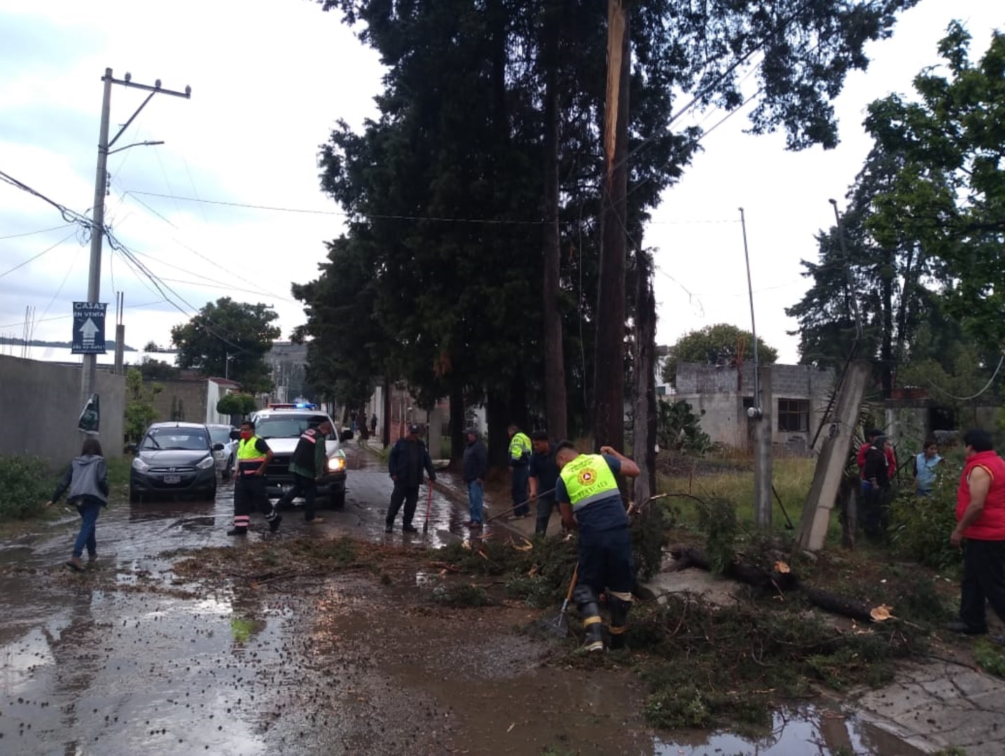 En el municipio de San Pablo Apetatitlán, el reblandecimiento de la tierra provocó la caída de un árbol que afectó la circulación y el suministro de energía eléctrica, sobre la carretera vía corta a la altura de Camino Real.