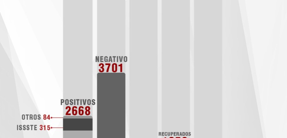 De esta manera, la entidad registra mil 659 personas recuperadas, dos mil 668 casos positivos y 389 fallecimientos.