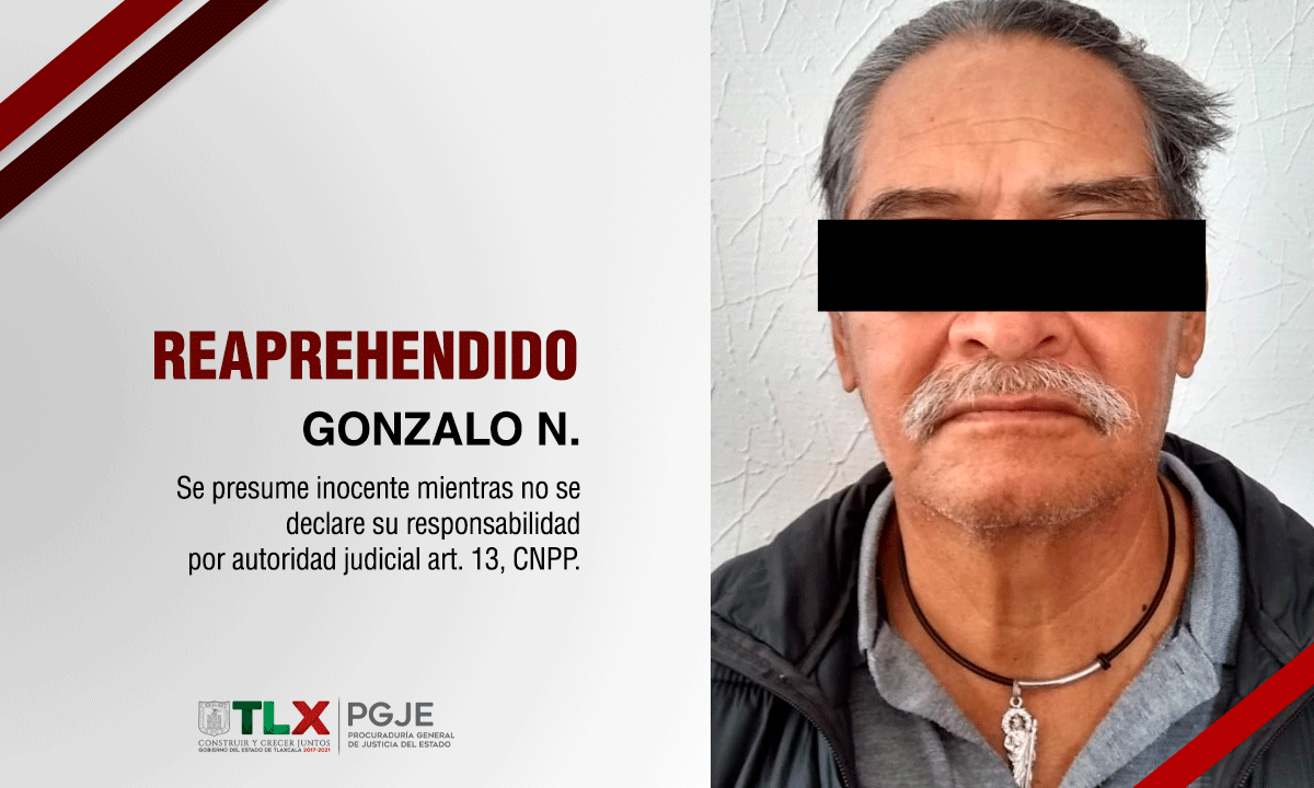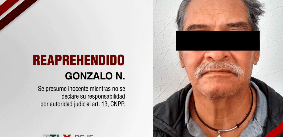 En apego a la estrecha coordinación que existe entre la Procuraduría General de Justicia de Tlaxcala y la Fiscalía General de Justicia de Jalisco, se logró la localización y reaprehensión de Gonzalo N., quien contaba con un mandamiento judicial en la entidad jalisciense por el delito de lesiones ocurrido en 2018.