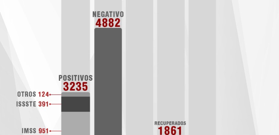 Del total de casos positivos, mil 769 se han registrado en la SESA, 951 en el IMSS, 391 en el Issste y 124 en otros espacios médicos.