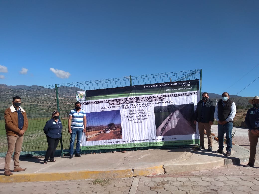El presidente municipal de Lázaro Cárdenas Tlaxcala, Jaciel González Herrera, en compañía de la síndico municipal Demetria Rodríguez López, el regidor Casiano Herrera, personal de obras públicas y el arquitecto Zoé Vladimir Sánchez, entregaron diversas acciones en la calle 16 de septiembre.