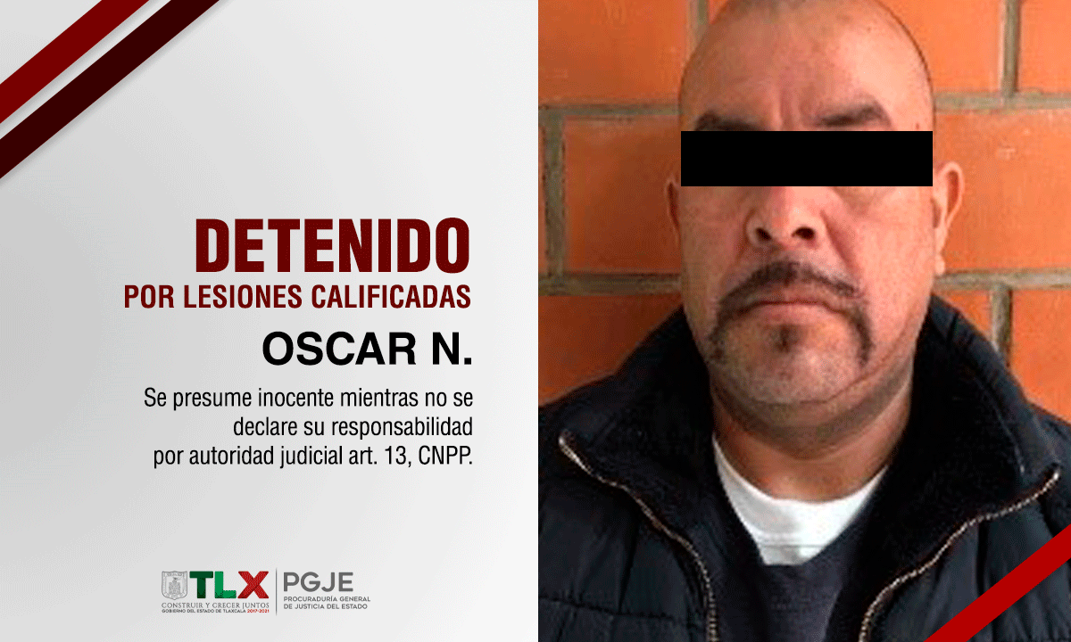 Resultado del seguimiento a las acciones de detenciones coordinada entre dependencias estatales y federales, la Procuraduría General de Justicia del Estado (PGJE) trasladó a Óscar N., a territorio tlaxcalteca, luego de ser capturado en la Ciudad de México por el delito de lesiones calificadas ocurrido en 2015.