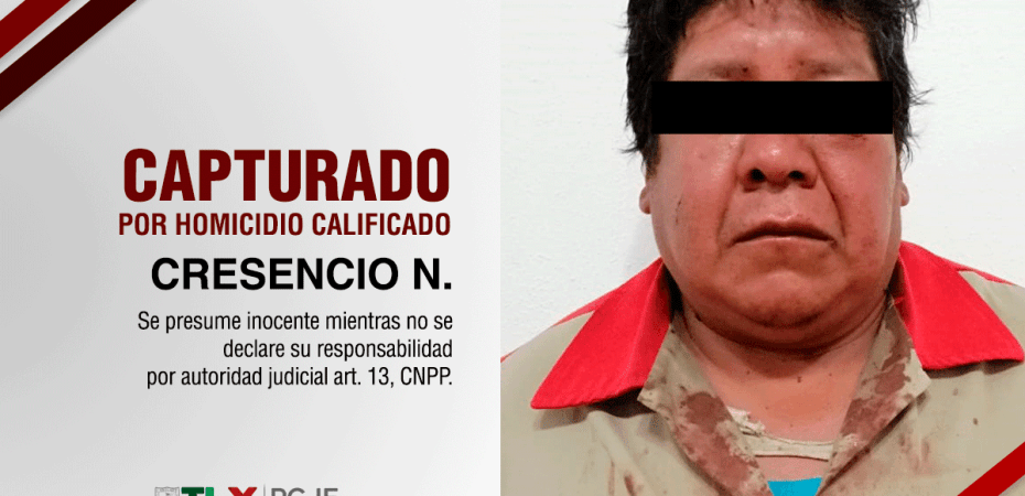 El trabajo inmediato y especializado de la Procuraduría General de Justicia del Estado (PGJE), tuvo como resultado la captura de Cresencio N., señalado como el presunto autor material del homicidio de un hombre en el municipio de Tocatlán, hechos ocurridos la noche del 11 de julio.