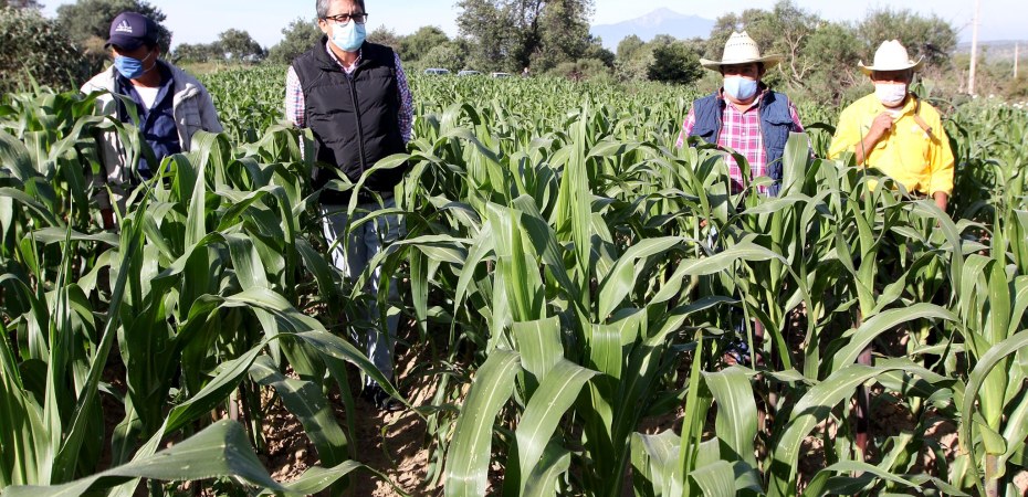 Arévalo Lara realizó un recorrido de supervisión en cultivos de maíz en la comunidad de Carrillo Puerto, en Atltzayanca, donde verificó que el maíz criollo temporal tiene un buen desarrollo, la planta se observa vigorosa y las lluvias le han sido benéficas ya que no se notan estresadas.