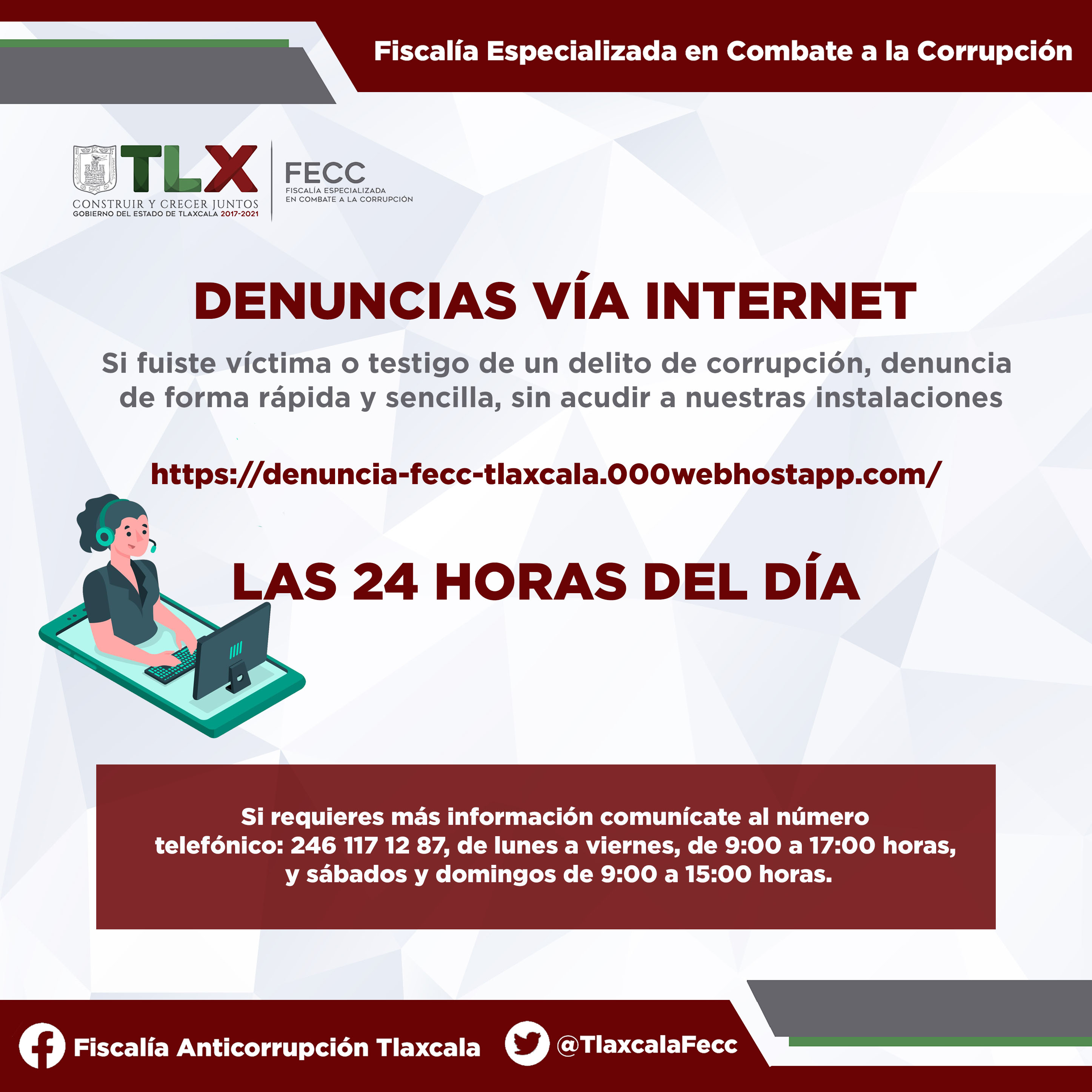 La Fiscalía Especializada en Combate a la Corrupción (FECC) implementó las denuncias vía internet, con el propósito de recibir y atender a la ciudadanía que ha sido víctima o testigo de algún delito en materia de corrupción.