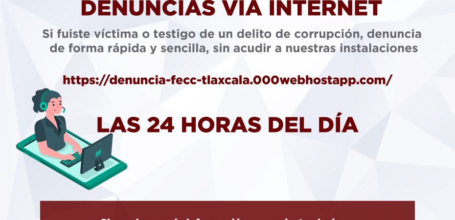 Sánchez Ortega destacó que los usuarios deberán ingresar de manera directa a la página https://denuncia-fecc-tlaxcala.000webhostapp.com/, que funcionará las 24 horas del día.