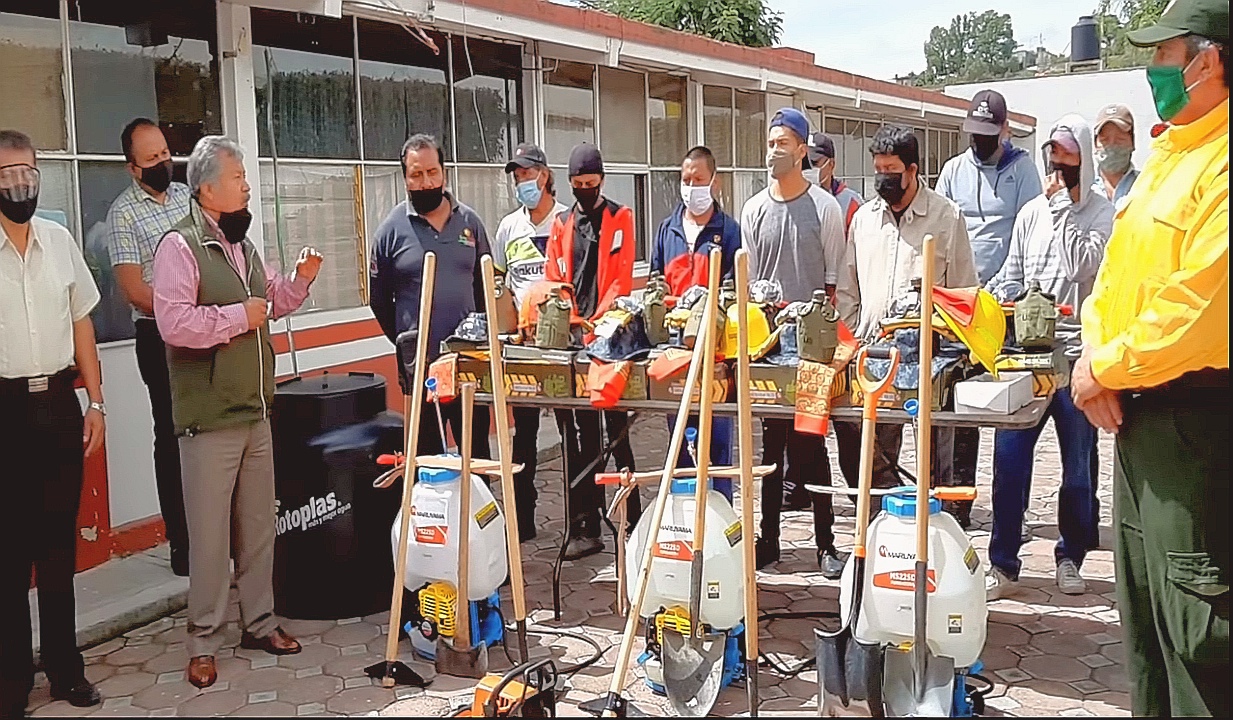 Botas, Camisola, Pantalon, Guantes, Anfora, Goggles, Pañuelo, Casco y sombrero de tela; además, de proporcionar utensilios para la prevención y combate contra incendios como: pala derecha, de cuchara, así como, forestal, matlao, machetes, bombas aspersoras de agua y moto sierra, se brindan los recursos necesarios para que los 10 integrantes de la brigada rural forestal contra incendios combata y realice acciones de prevencion en las zonas de mayor afectación y susceptibilidad ante incendios forestales.