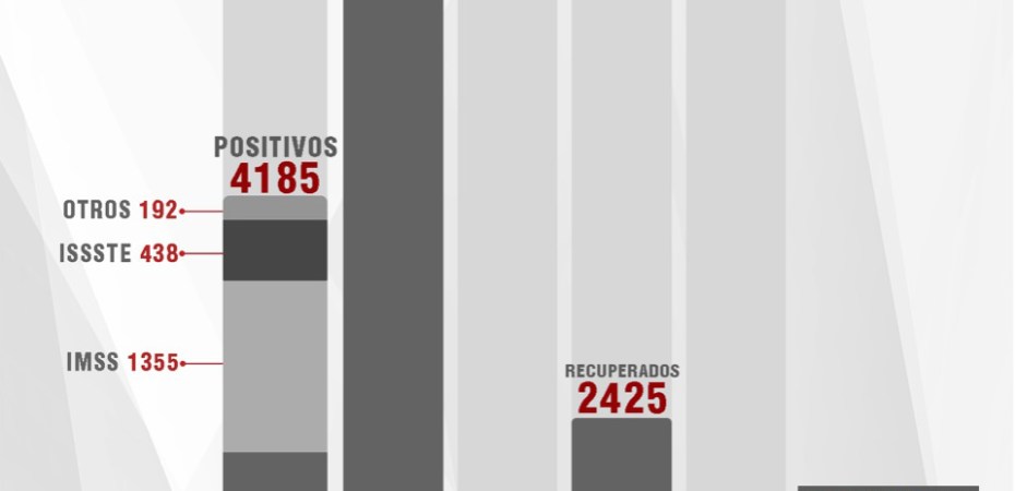 De esta manera, el estado registra dos mil 425 personas recuperadas, cuatro mil 185 casos positivos y 605 fallecimientos.