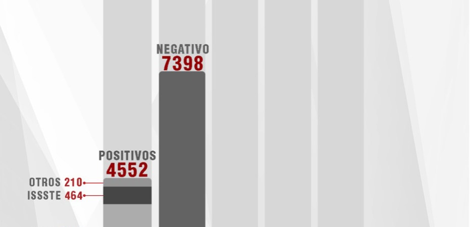 Del total de casos positivos, dos mil 383 se han registrado en la SESA, mil 495 en el IMSS, 464 en el Issste y 210 en otros espacios médicos.