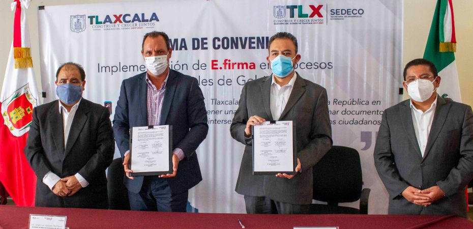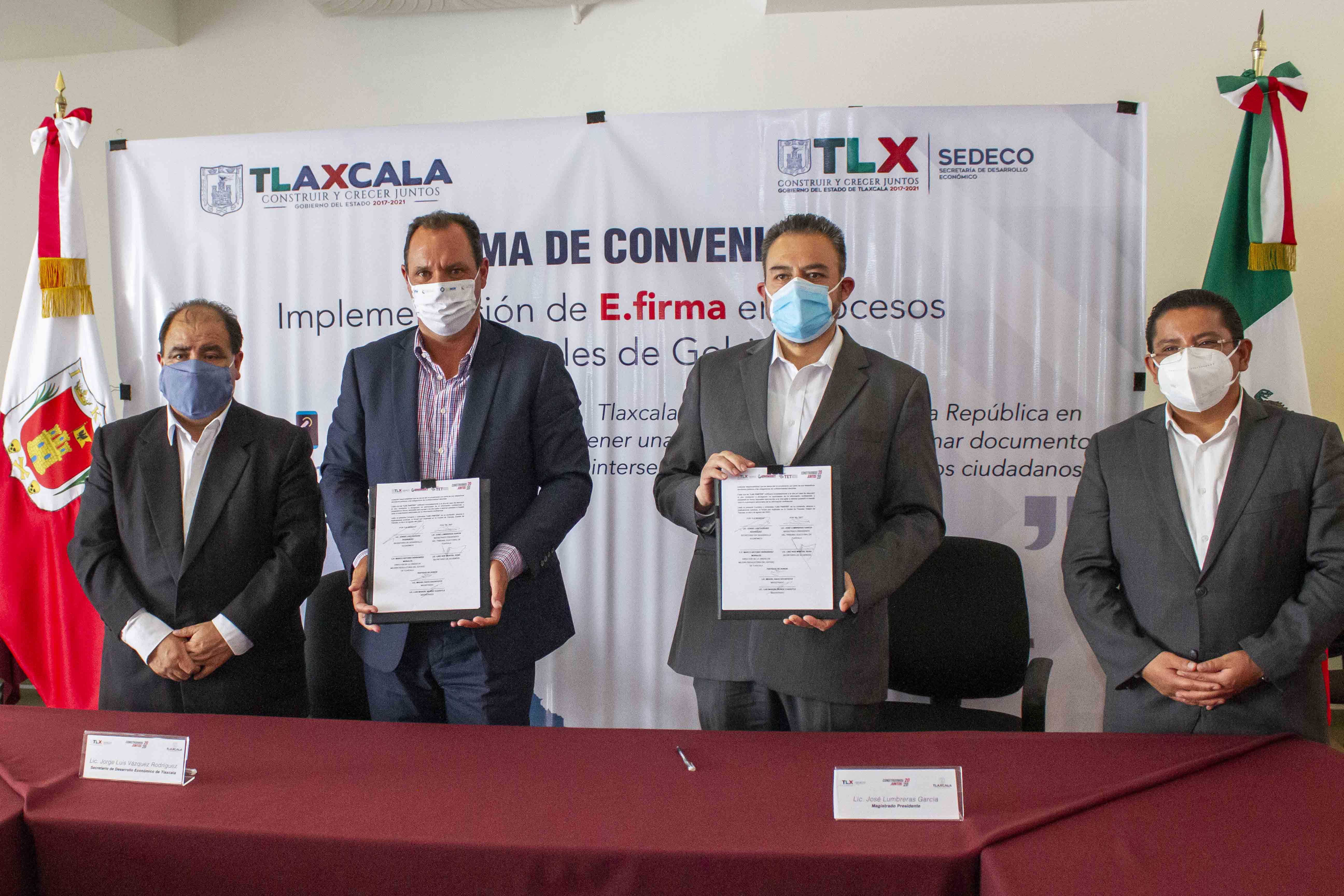 La Secretaría de Desarrollo Económico (Sedeco) y el Tribunal Electoral de Tlaxcala (TET) firmaron el convenio de colaboración para implementar el uso de la firma electrónica avanzada en todos los procesos administrativos de este órgano.
