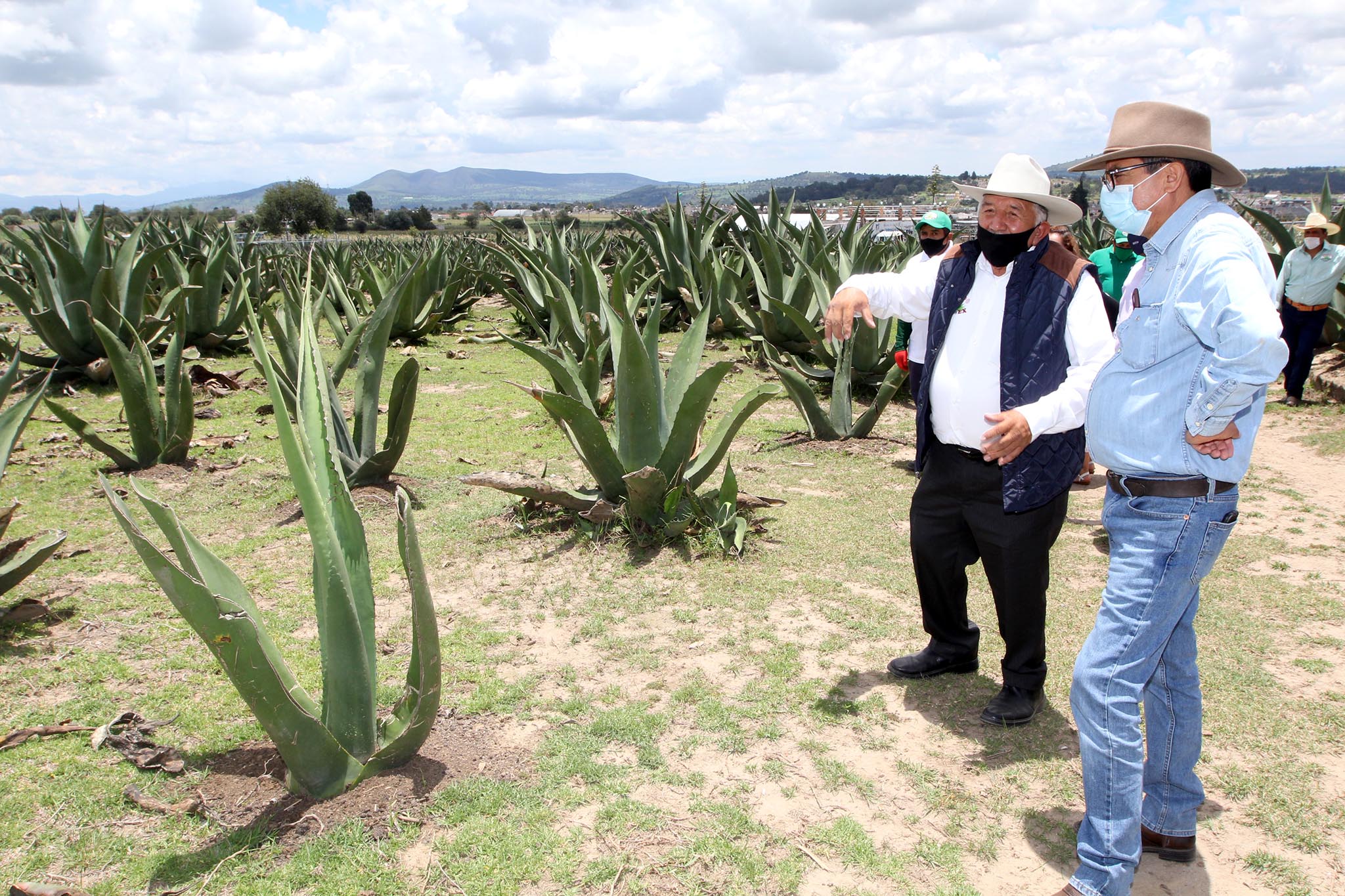 Durante la entrega del proyecto, el Secretario de Fomento Agropecuario recorrió los cultivos de maguey e inauguró el centro de acopio.