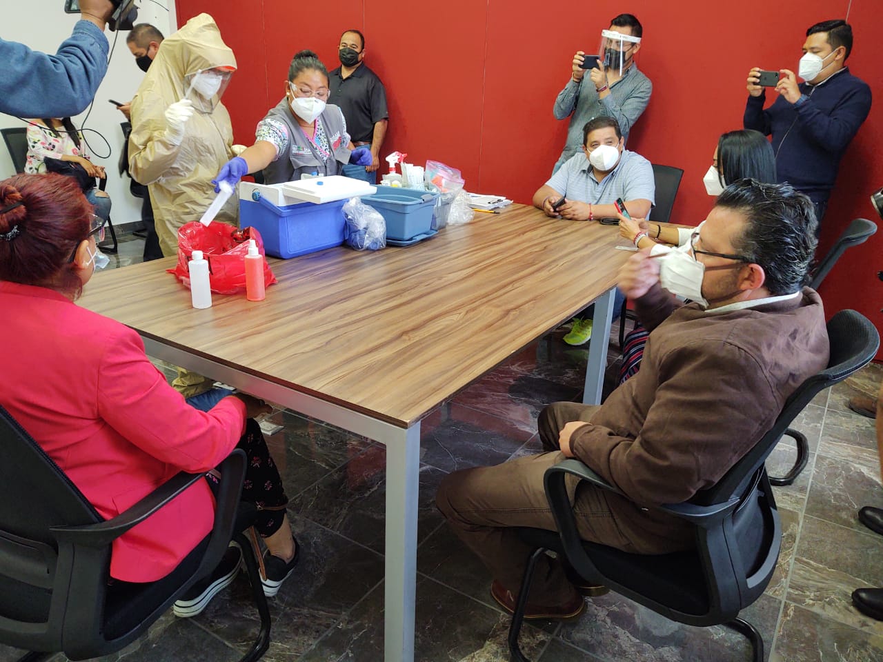 Diputados locales y personales que labora en el Congreso de Tlaxcala, se realizaron pruebas para descartar o detectar, y en su caso atender, posibles casos de Covid-19, de cara a la reanudación gradual de actividades en el Palacio Legislativo.