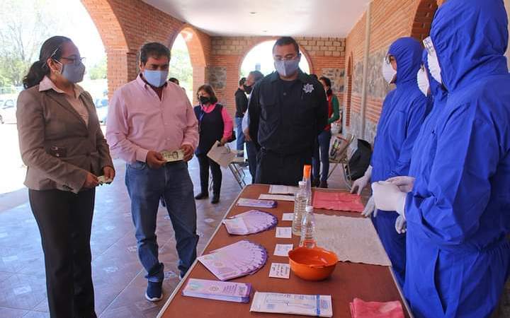Eugenio Sánchez Amador, presidente municipal de Xaltocan, Tlax., puso en marcha la campaña de sanitización de billetes y monedas, con la finalidad de reforzar las medidas sanitarias, ante la pandemia del coronavirus.