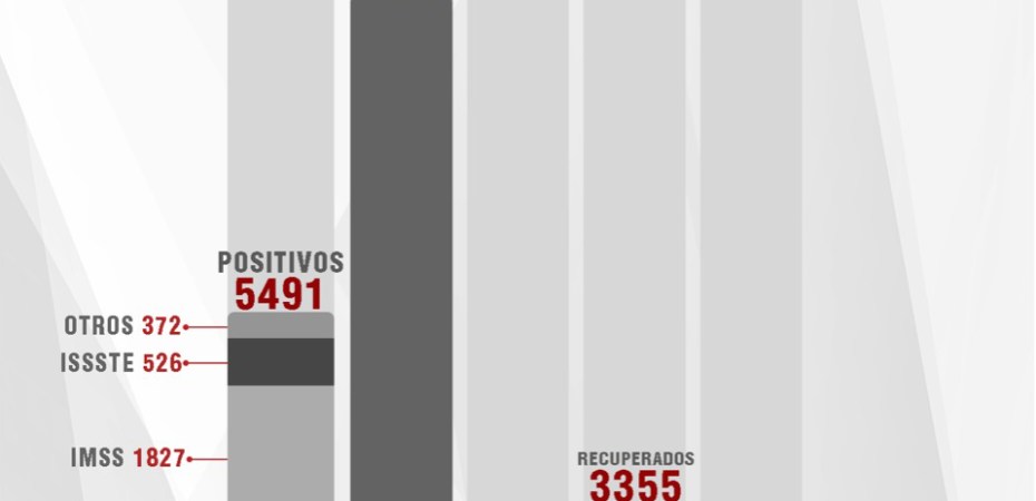 De esta manera, el estado registra tres mil 355 personas recuperadas, cinco mil 491 casos positivos y 853 fallecimientos.