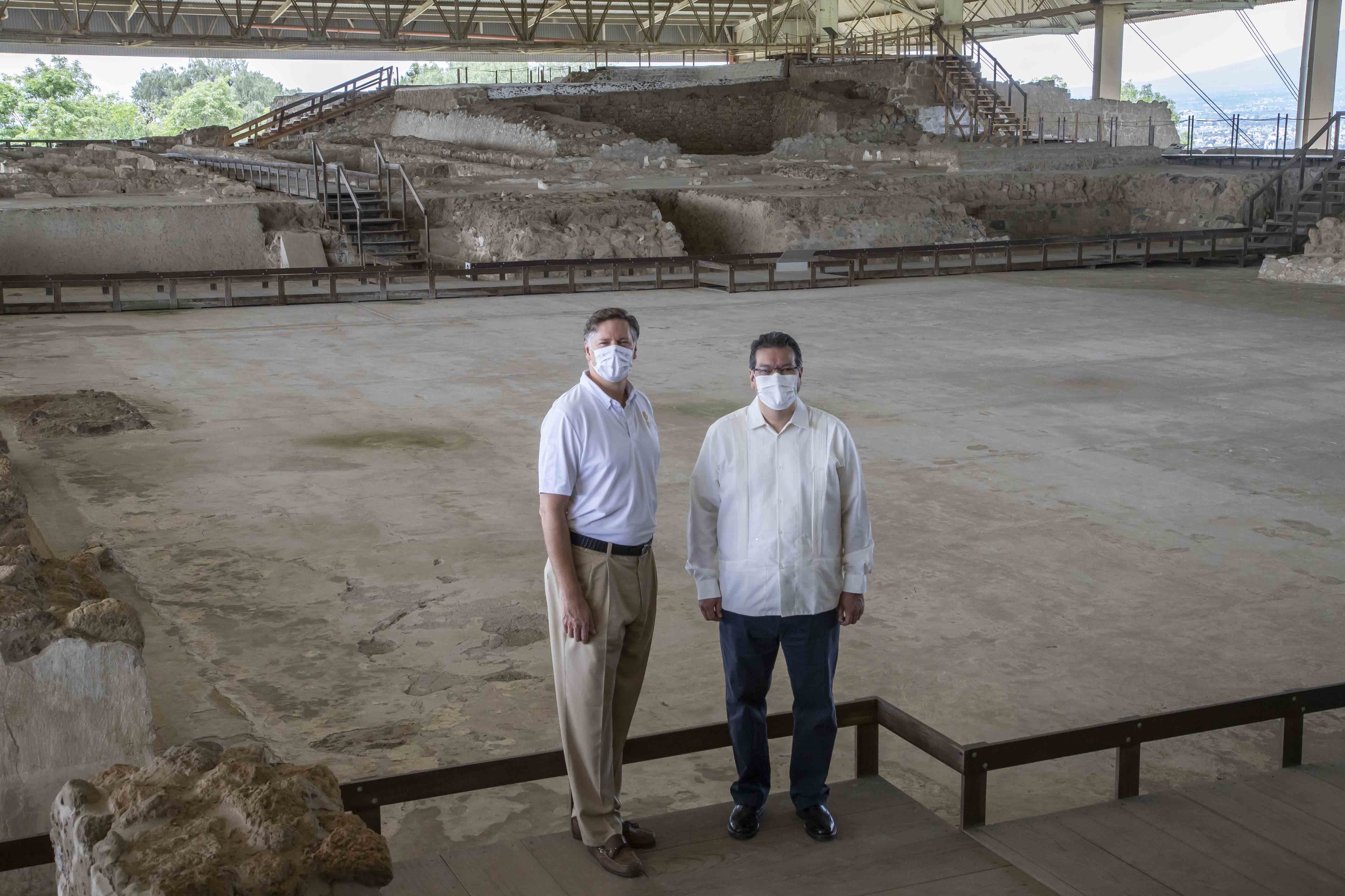 En el segundo día, el Gobernador Marco Mena y el Embajador Christopher Landau visitaron la zona arqueológica de Cacaxtla-Xochitécatl y el complejo turístico Val´Quirico.