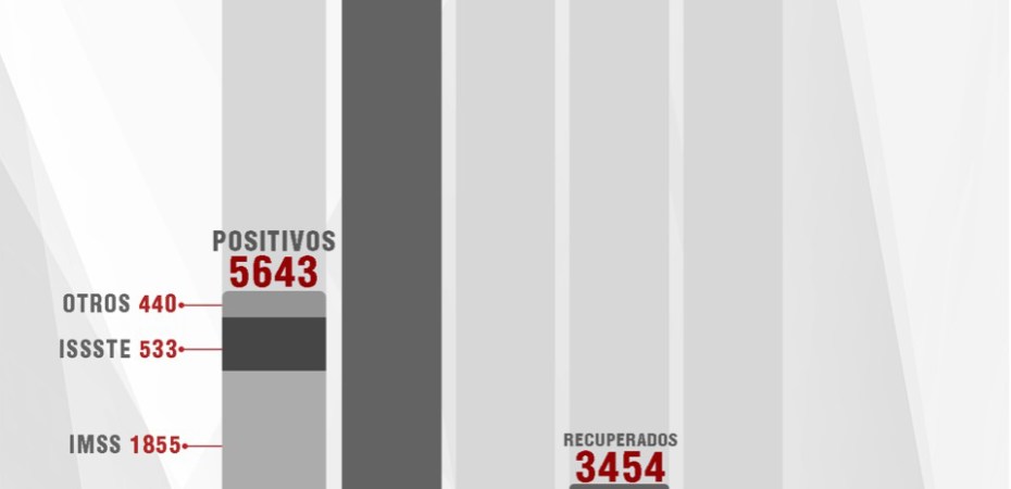 Del total de casos positivos, dos mil 815 se han registrado en la SESA, mil 855 en el IMSS, 533 en el Issste y 440 en otros espacios médicos.