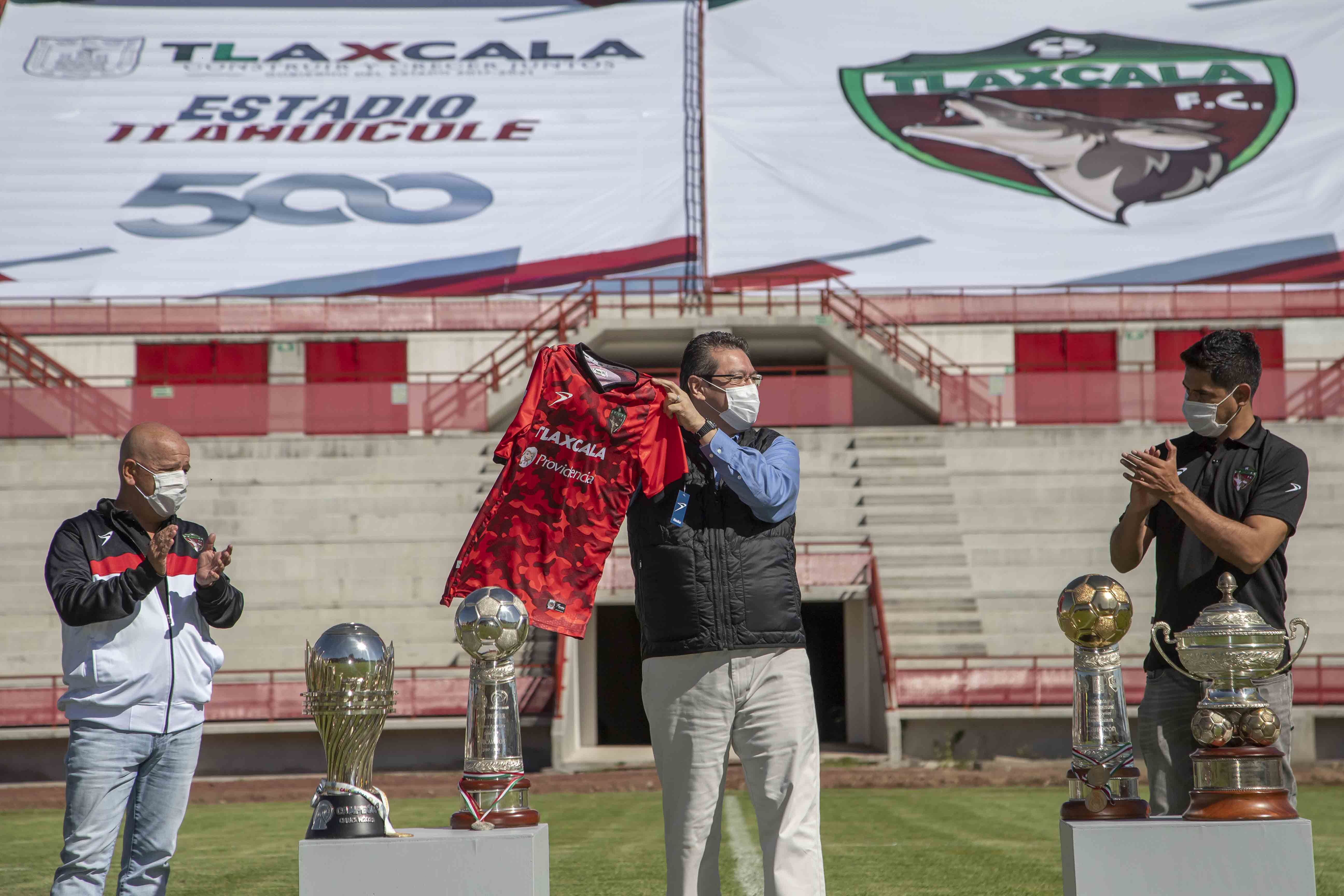 Como parte de la presentación, el Gobernador Mena recibió de la directiva de Tlaxcala F.C. la playera oficial 2020 del equipo.
