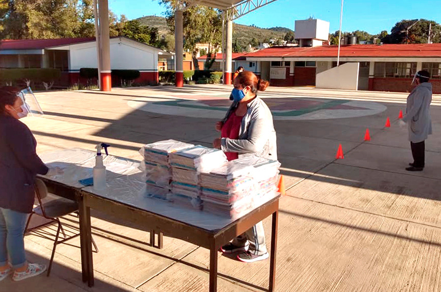 “Atendiendo las recomendaciones de la SEPE-USET, los directores dispusieron de áreas o espacios amplios, como los patios de las escuelas, donde se entregaron los libros. El personal de las instituciones que apoya al ingreso de los padres de familia, porta el cubrebocas y toma la temperatura, aplica gel antibacterial y recomienda la sana distancia”, informó.