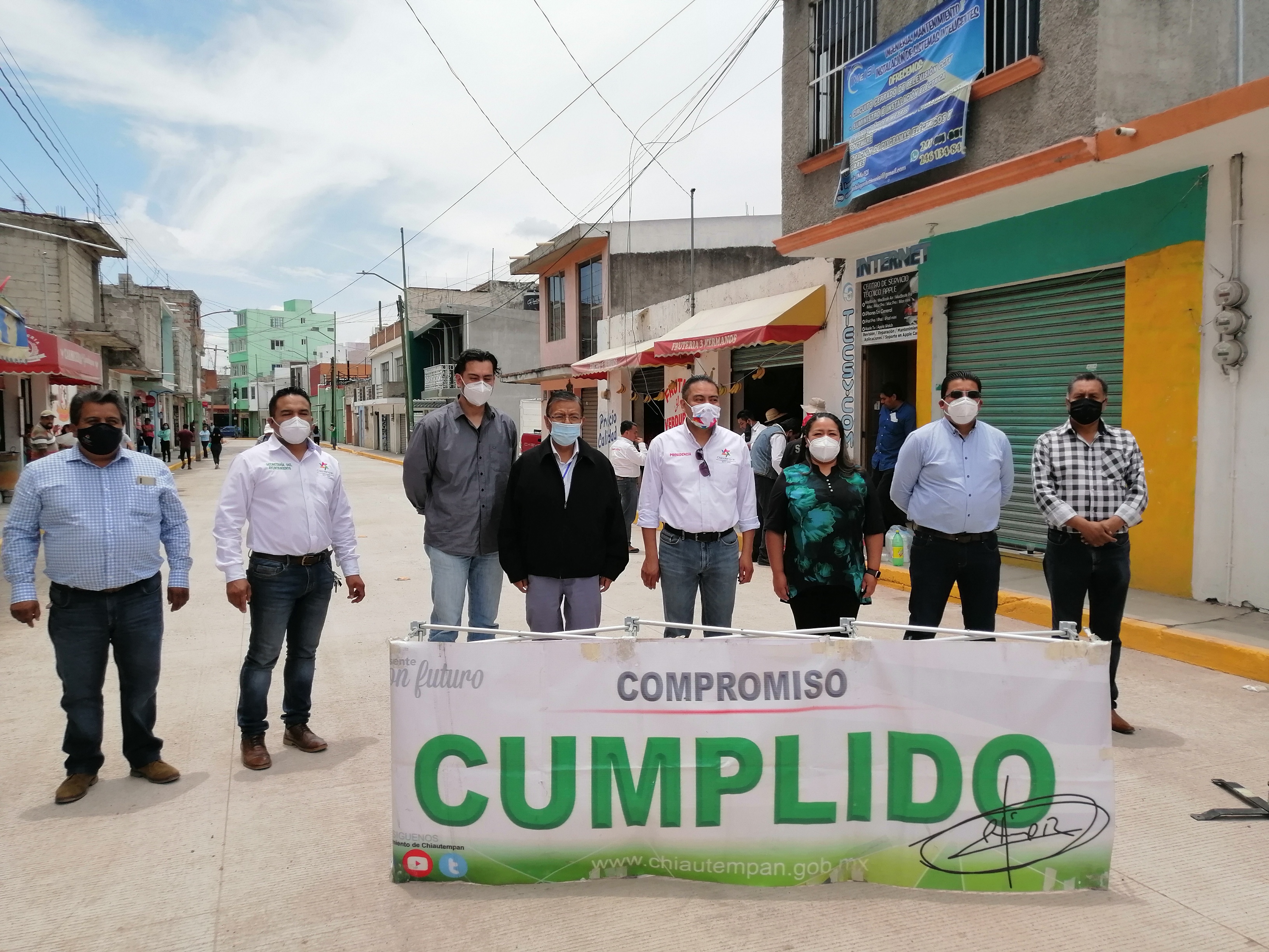 El Presidente Municipal de Chiautempan Héctor Domínguez Rugerio en Compañía de la Diputada Maribel León Cruz y del Secretario del Ayuntamiento Nicolás Gutiérrez De Casa, hizo entrega de la primera etapa de las Obras de Pavimentación de Concreto y obras complementarias en la calle Libertad de la Colonia El Centro.