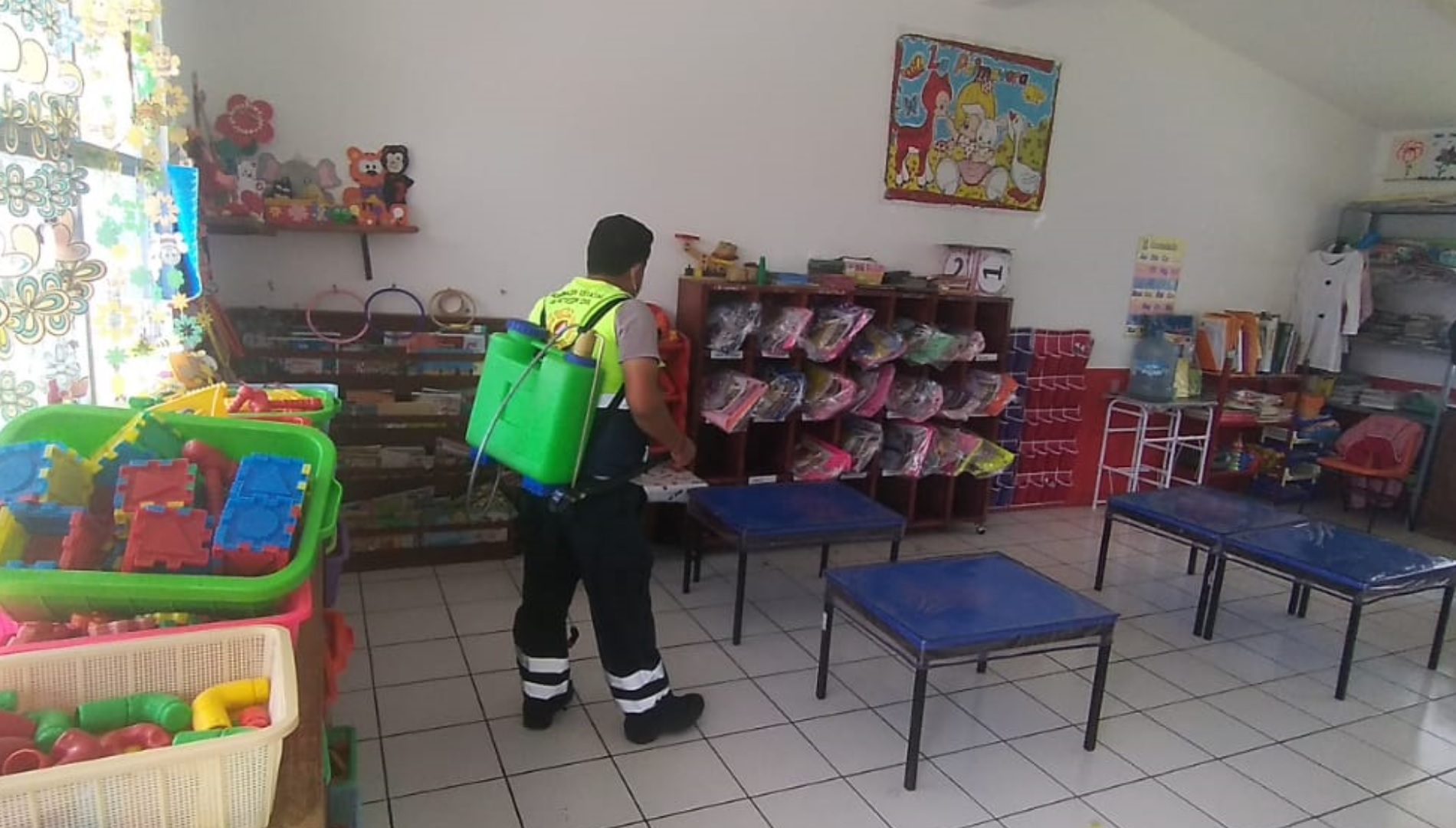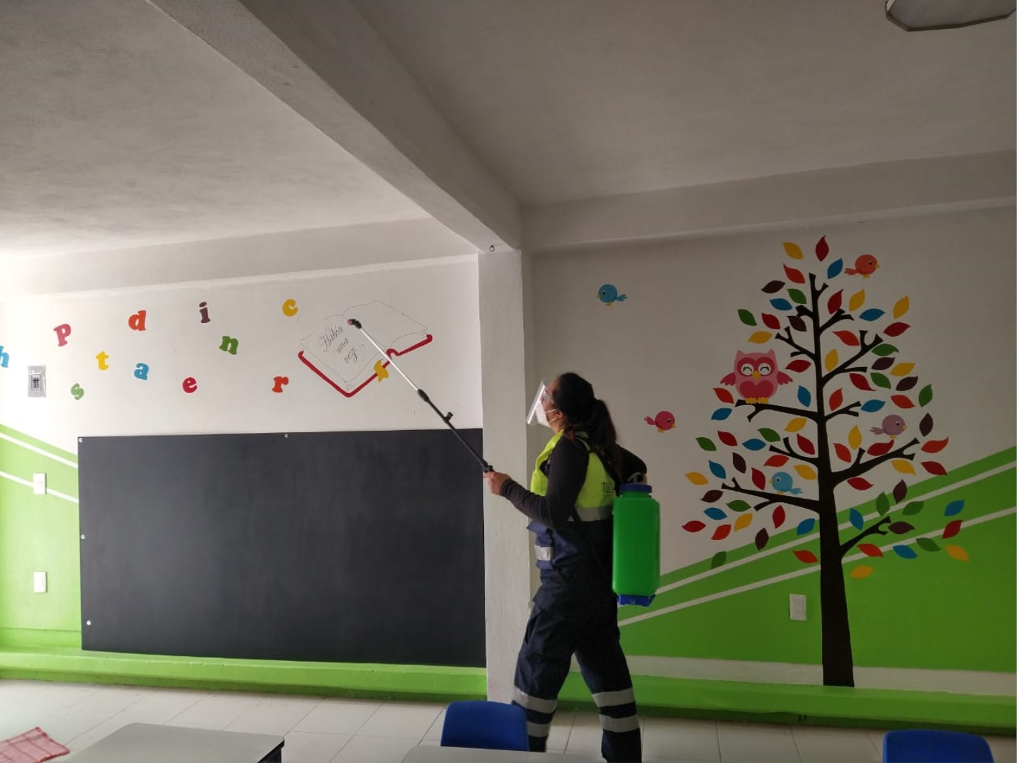 El funcionario estatal señaló que la meta es desinfectar más de mil 300 escuelas de educación inicial, Centros de Desarrollo Infantil (Cendi), Estancias Infantiles, primarias, secundarias técnicas, generales y telesecundarias.