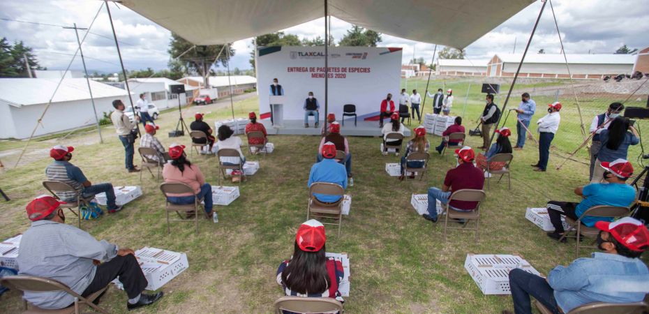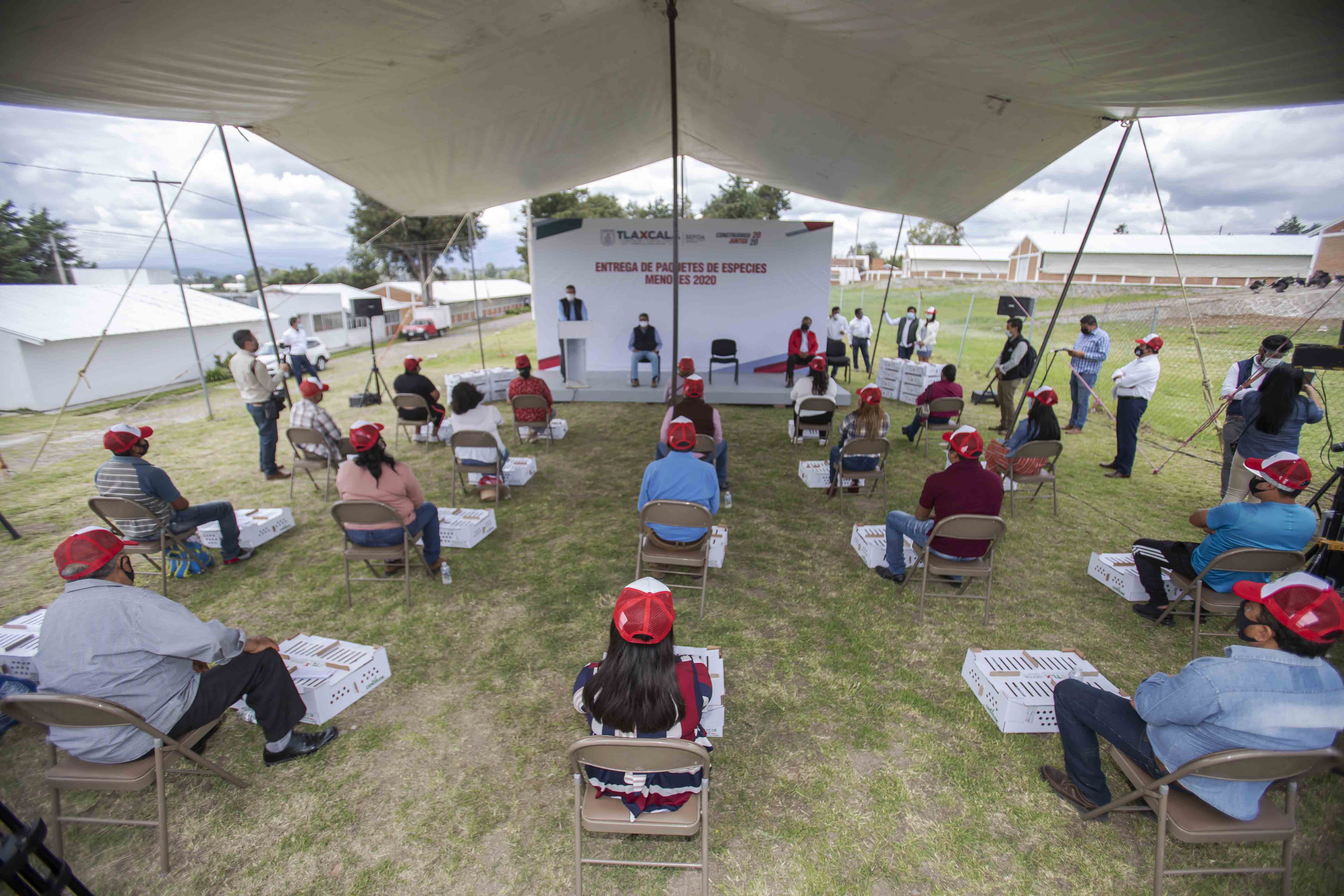 Como parte del evento, el Gobernador Mena entregó de manera simbólica 20 paquetes de especies menores a familias de los municipios de Panotla, Tetla de la Solidaridad, Ixtacuixtla, Tepetitla y Huamantla.