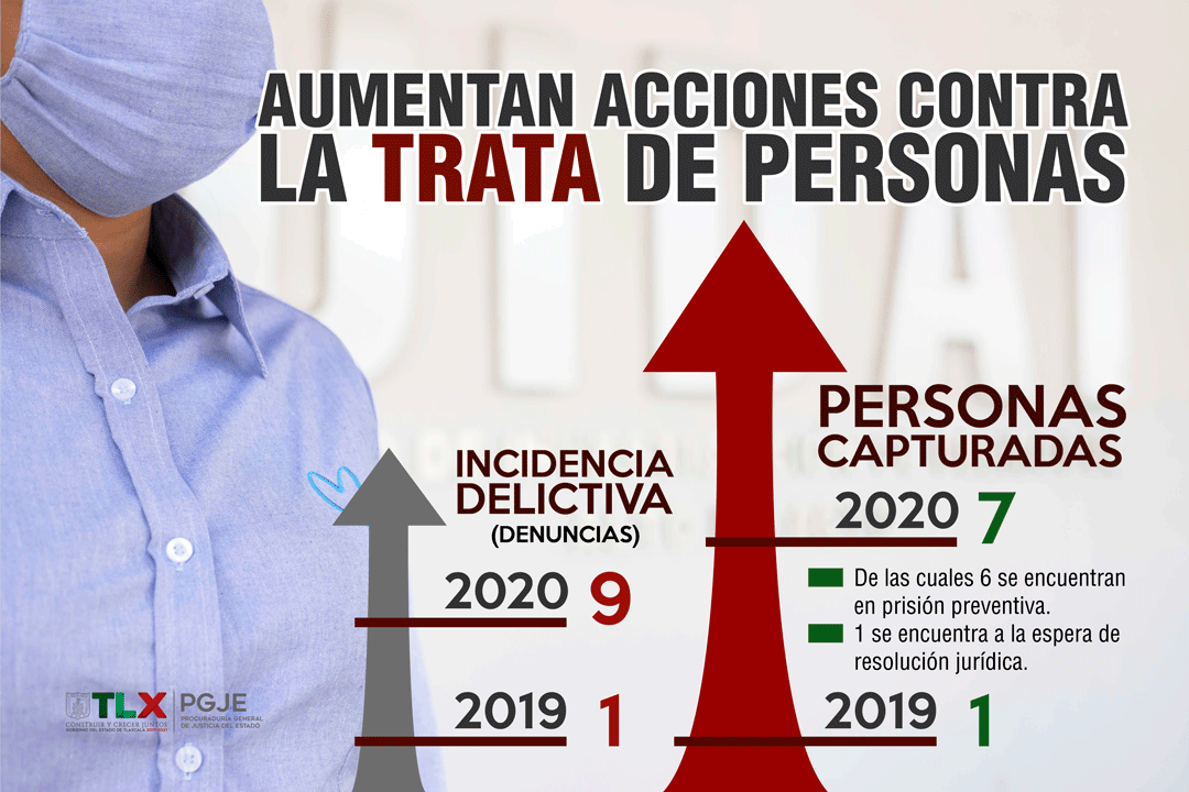 En lo que va del año, la Procuraduría General de Justicia del Estado (PGJE) ha incrementado el número de personas capturadas y puestas a disposición del Juez de Control por el delito de trata de personas, en comparación al mismo periodo de 2019.