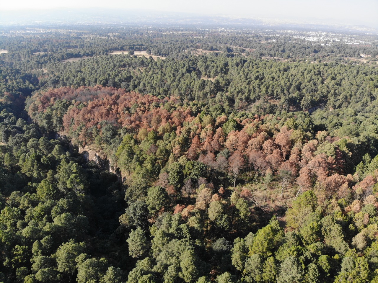 Llevando en esta nueva etapa, actividades de derribo, seccionado o troce del fuste, aplicación del químico y control de residuos así como trabajar en una reforestación de 200 mil árboles forestales, y más actividades esenciales para contrarrestar los efectos de la plaga.