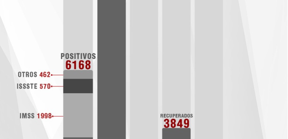 De esta manera, el estado registra tres mil 849 personas recuperadas, seis mil 168 casos positivos y 946 fallecimientos.